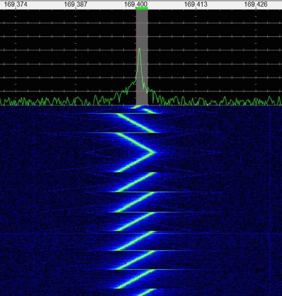 Once a LoRa modem has “locked” on to the preamble signal, the end of the preamble is signaled by the “reverse chirp” seen in Figure 1.